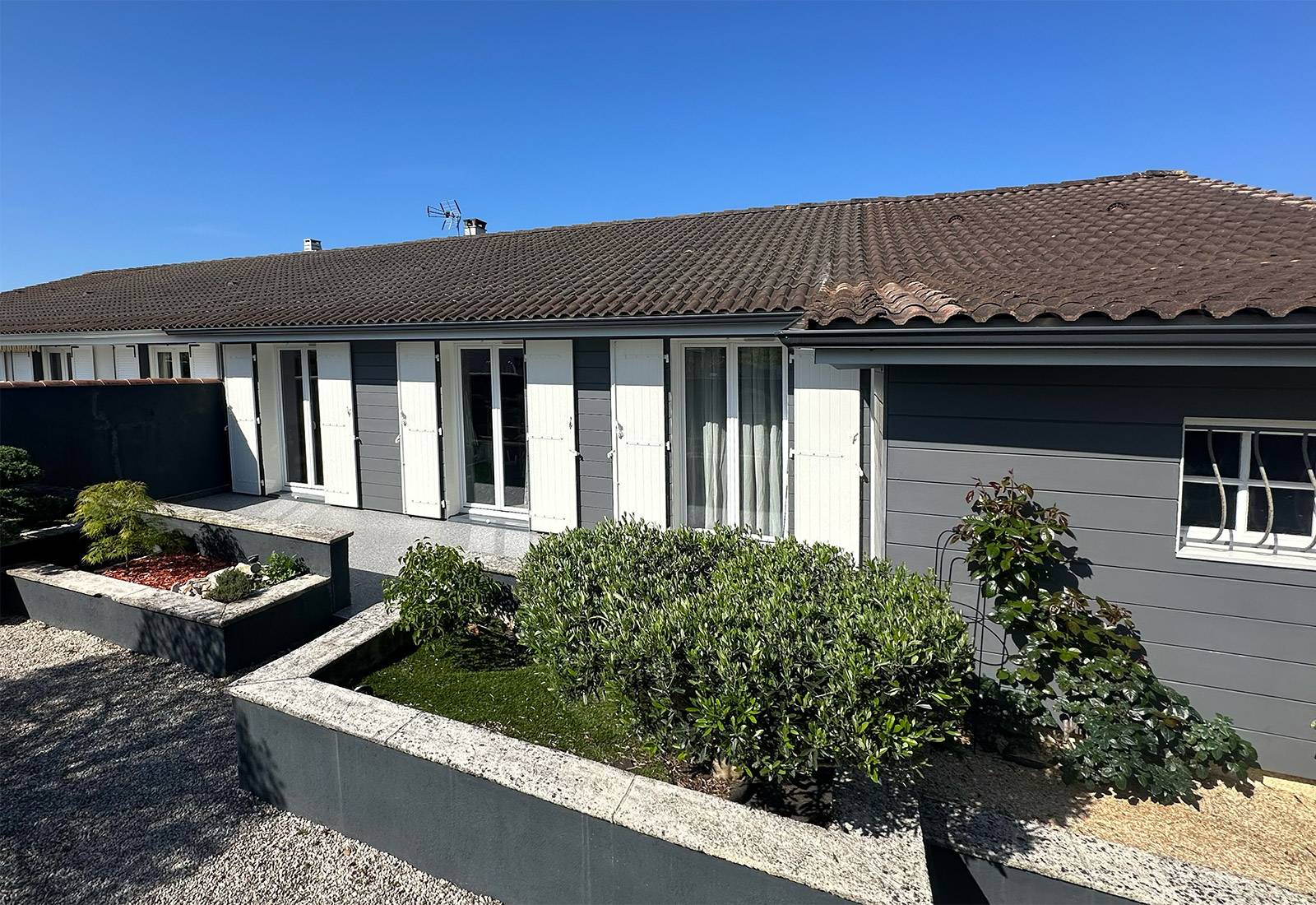 Nous avons posé ces volets sur plusieurs fenêtres et portes-fenêtres, en veillant à soigner chaque détail de finition. Une fois l’installation terminée, nous avons vérifié la parfaite ouverture et fermeture de chaque battant, ainsi que leur résistance au vent.